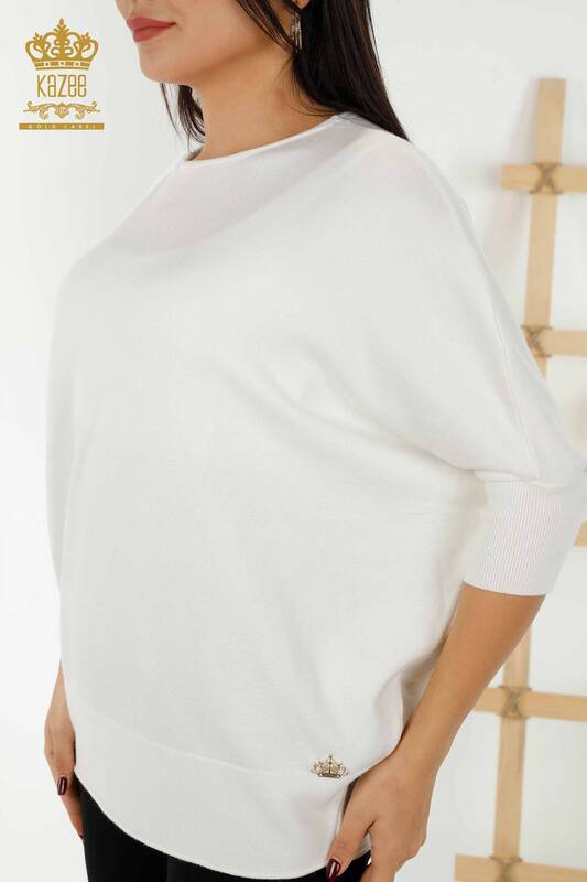Grossiste Pull en Tricot Femme Basic Logo Manches Chauve Souris Ecru - 30241 | KAZEE