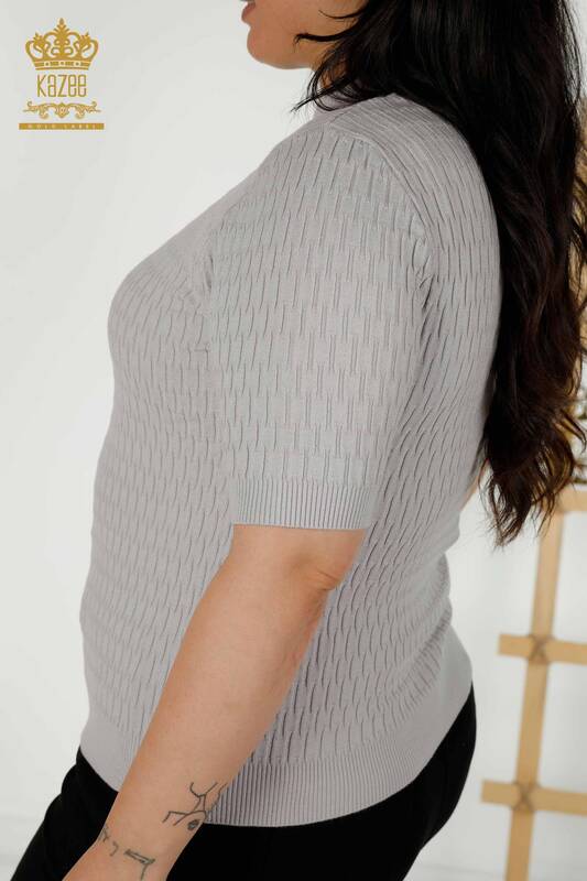 Grossiste Pull Femme Tricot Col Montant Auto Tissé Gris - 30338 | KAZEE