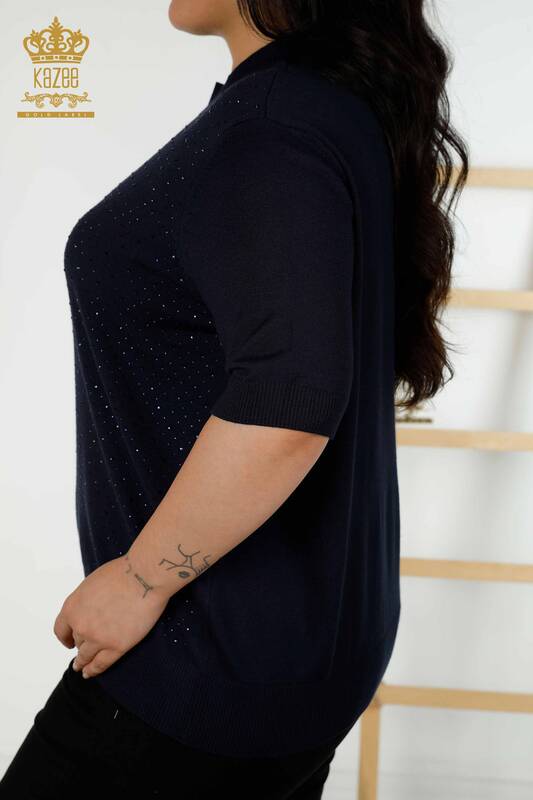 Grossiste Pull en Tricot Femme Manches Courtes Pierre Brodée Marine - 16950 | KAZEE