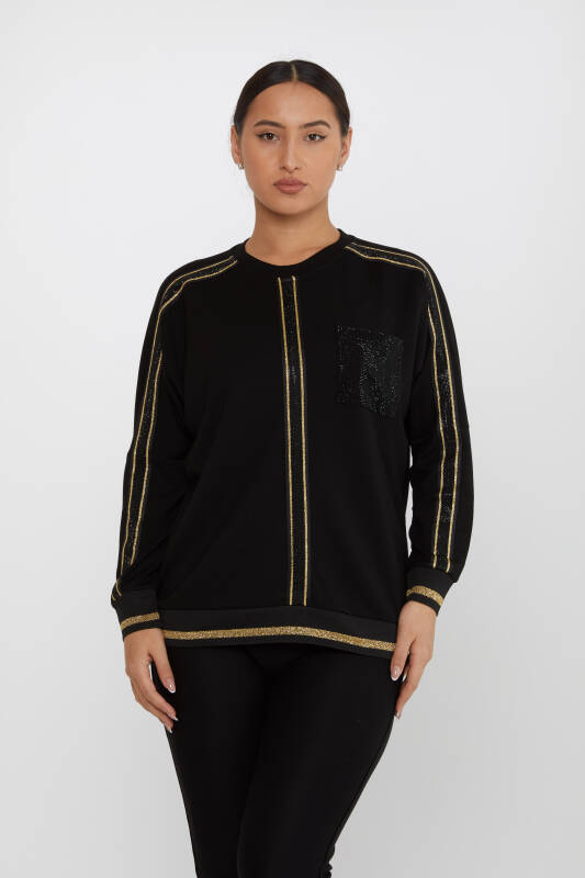 Hanorac Buzunar Pietra Brodat Maneca Lunga Negru-Auriu - 2245 | KAZEE (Set de 3 L-XL-2XL)