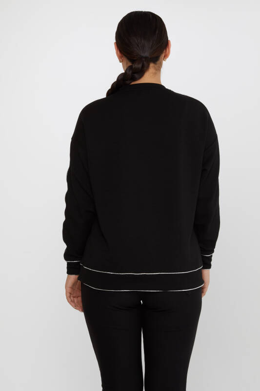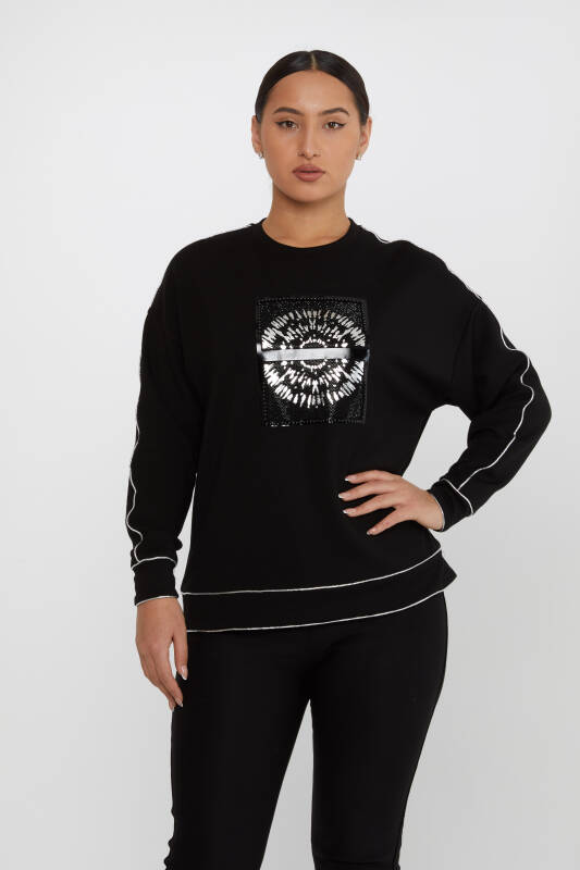 Hanorac cu margele cu piatra brodata cu model negru-argintiu - 2232 | KAZEE (Set de 3 L-XL-2XL)