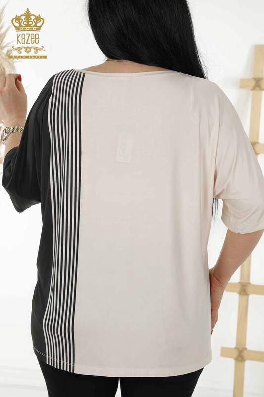 Hurtownia bluzek damskich z nadrukiem cyfrowym, haftowanym kamieniem z krótkim rękawem, czarna - 12039 | KAZEE