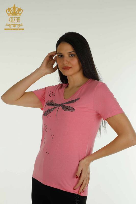 Hurtownia bluzek damskich Dragonfly Szczegółowe haftowane kamienie różowe - 79362 | KAZEE