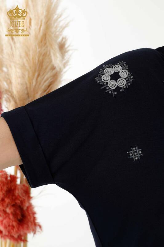 Hurtownia bluzek damskich w kwiatowe wzory, haftowane kamienie granatowe - 78879 | KAZEE