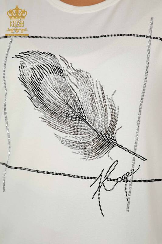 Hurtownia bluzek damskich w liście z haftowanym kamieniem w kolorze ecru - 78878 | KAZEE