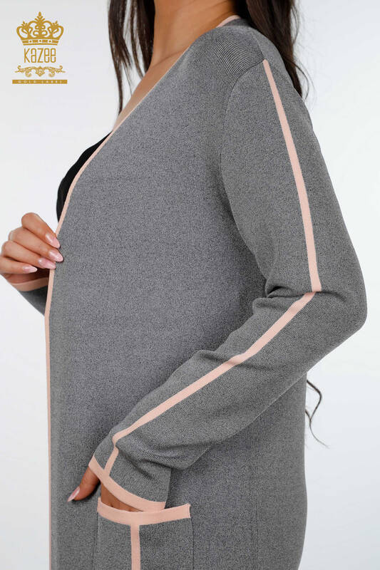 Hurtownia damskich rękawów kardiganowych z bocznymi kieszeniami w paski - 14269 | KAZEE