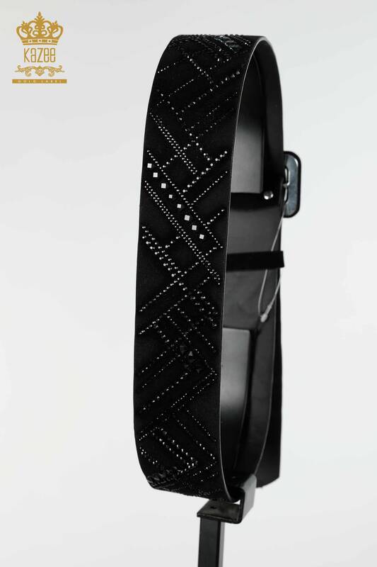 Hurtownia paska damskiego w paski z kryształowymi kamieniami, haftowana czarna - 540 | KAZEE