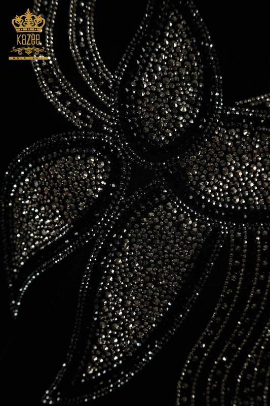 Hurtownia bluzek damskich z okrągłym dekoltem, haftowana w kolorze czarnym - 79380 | KAZEE