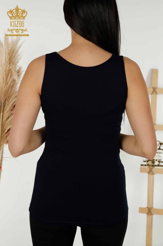 Hurtownia bluzek damskich bez rękawów Basic Logo granatowa - 79262 | KAZEE