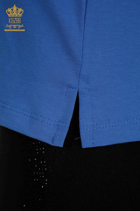 Hurtownia bluzek damskich z haftem w róże i krótkim rękawem z haftowanym kamieniem Saks - 79867 | KAZEE