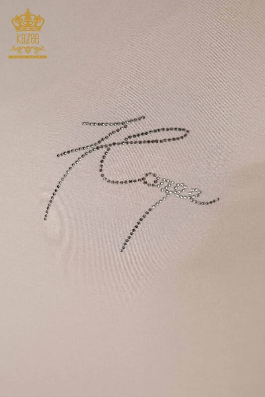 Hurtownia bluzki damskiej z haftem w kamieniu, model amerykański beżowy - 78918 | KAZEE