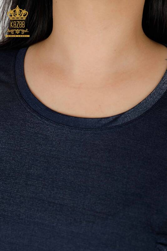 Hurtownia bluzki damskiej model amerykański z okrągłym dekoltem granatowa - 77005 | KAZEE