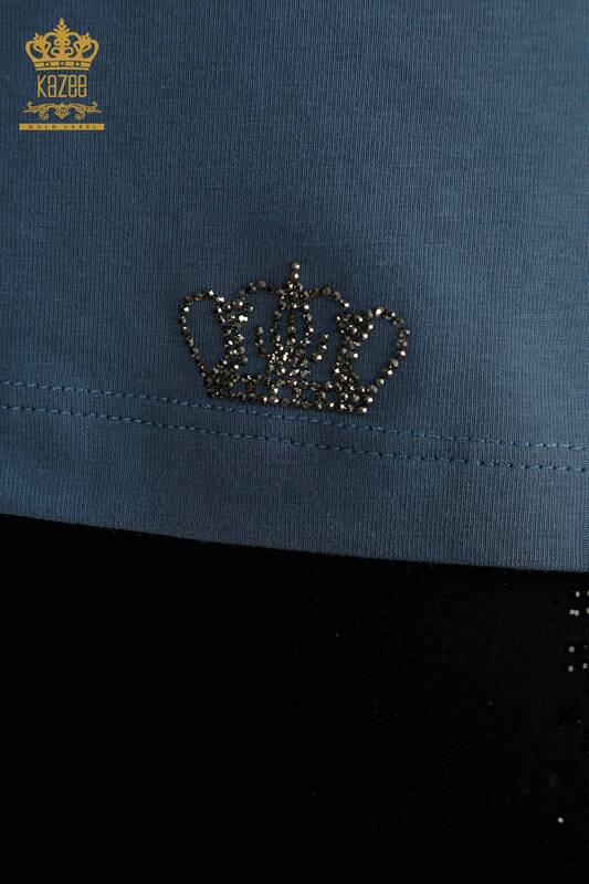 Hurtownia bluzek damskich z krótkim rękawem i okrągłym dekoltem Indygo - 79563 | KAZEE