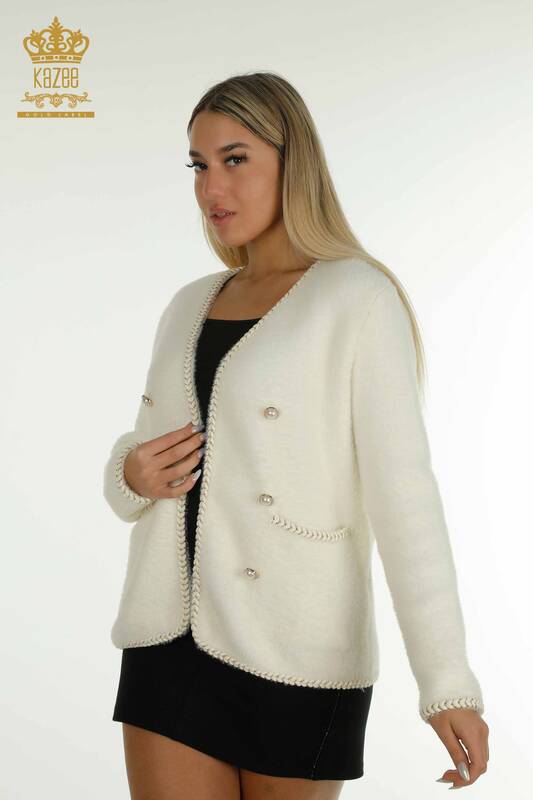 Hurtownia damska Angora Cardigan Pocket Szczegółowo zapinana na guziki Ecru - 30799 | KAZEE