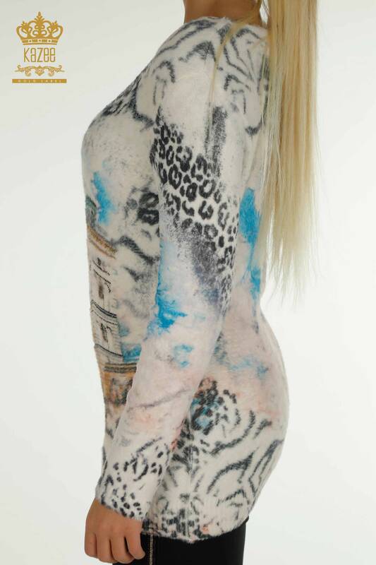 Hurtownia damska swetra z dzianiny Angora z długim rękawem i haftowanym kamieniem cyfrowym - 40020 | KAZEE