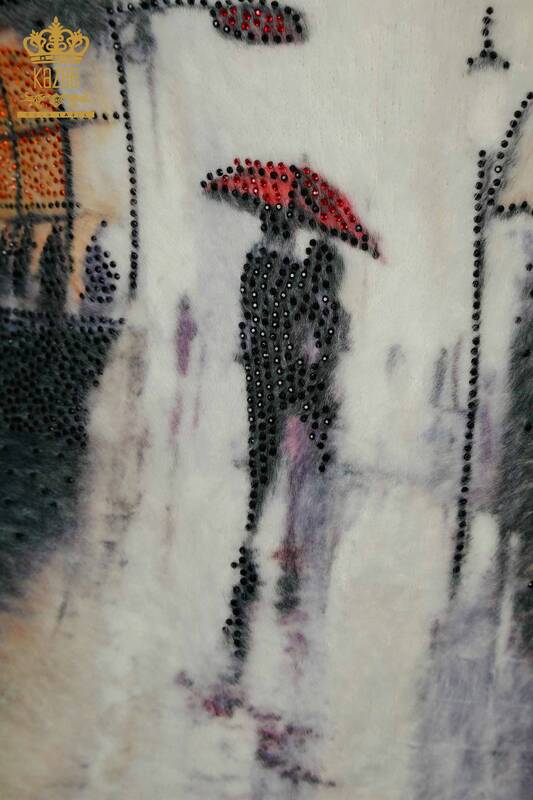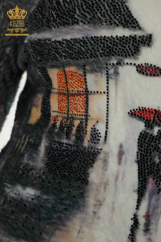 Hurtownia damska swetra z dzianiny Angora z długim rękawem i kamieniem haftowanym cyfrowym - 40023 | KAZEE