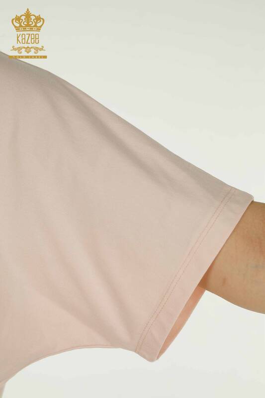 Hurtownia Damska Bluzka Kwiat Haftowany Kryształowy Kamień Haftowany Krótki Rękaw Różowy - 79459 | KAZEE