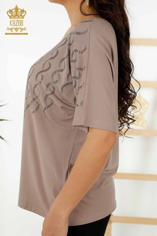 Hurtownia bluzek damskich z kryształowymi kamieniami, haftowanymi wzorami z norek - 79069 | KAZEE