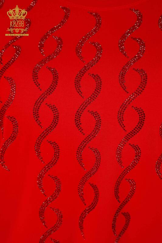 Hurtownia bluzek damskich z kryształowymi kamieniami, haftowanymi wzorami w kolorze czerwonym - 79069 | KAZEE