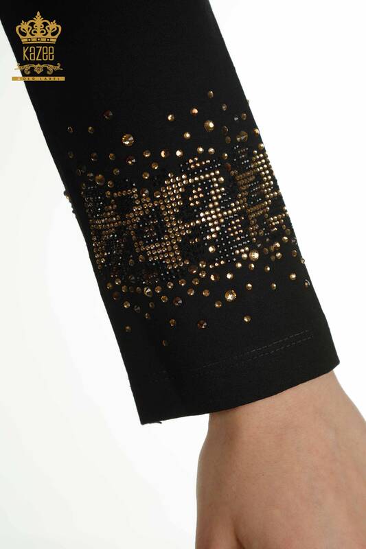 Hurtownia bluzek damskich w panterkę z haftowanym kamieniem w kolorze czarnym - 79383 | KAZEE