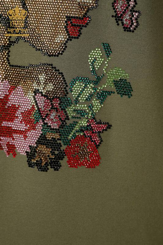Hurtownia bluzek damskich we wzorzyste kolorowe kamienie haftowane khaki - 78913 | KAZEE