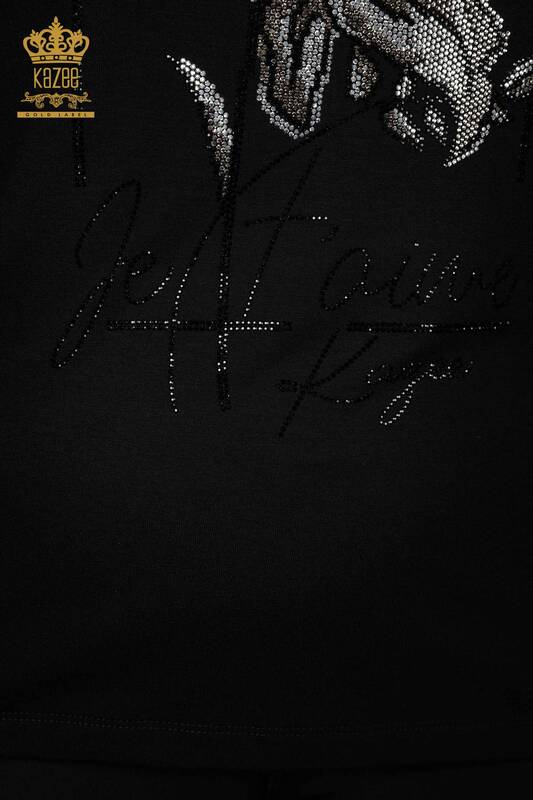 Hurtownia bluzek damskich w kwiaty z haftowanym kamieniem w kolorze czarnym - 79014 | KAZEE