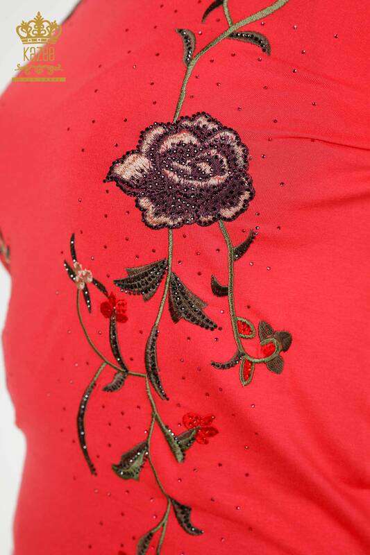Hurtownia bluzek damskich z motywem róży, haftowanym kamieniem i kwiatem granatu - 79044 | KAZEE