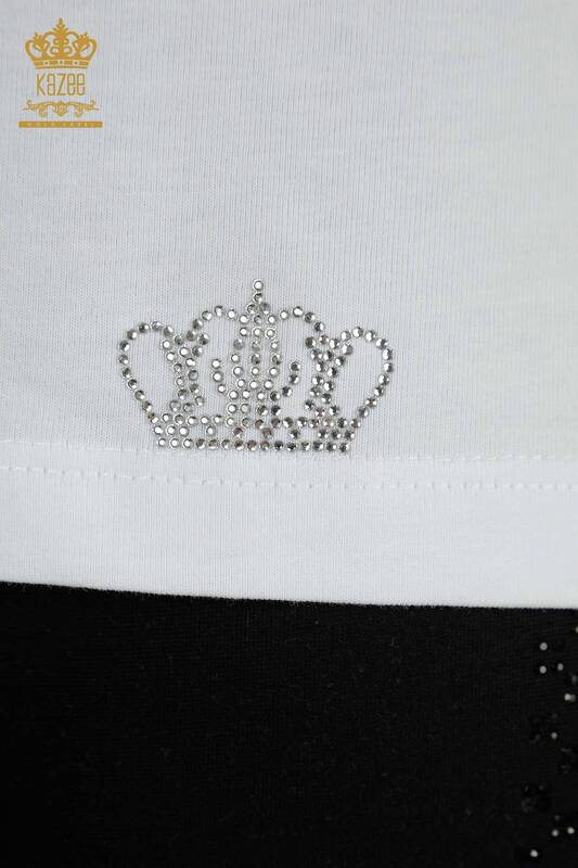 Hurtownia bluzek damskich z krótkim rękawem i okrągłym dekoltem, biała - 79563 | KAZEE