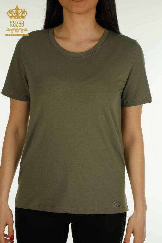 Hurtownia bluzek damskich z krótkim rękawem i okrągłym dekoltem Khaki - 79563 | KAZEE