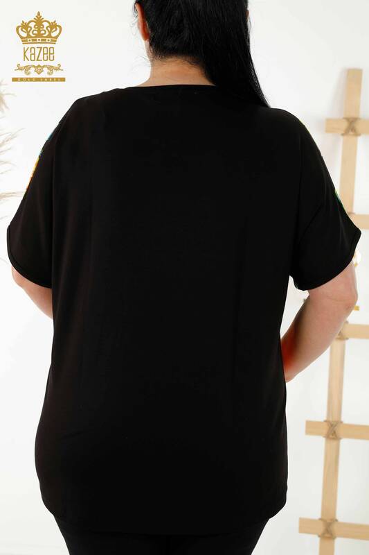 Hurtownia bluzek damskich z nadrukiem cyfrowym i haftowanym kamieniem z krótkim rękawem - 12102 | KAZEE