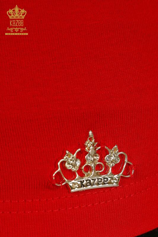 Hurtownia bluzki damskiej z zerowym rękawem, czerwona z logo - 79312 | KAZEE