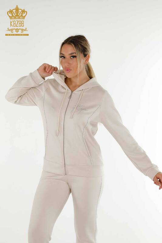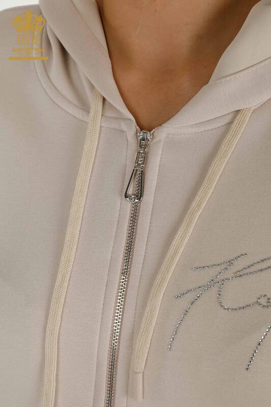 Hurtownia dresów damskich z haftowanym kamieniem i zamkiem błyskawicznym z kapturem - 20414 | KAZEE
