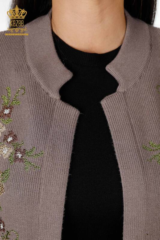 Hurtownia damska kamizelki z dzianiny, krótka, z kwiatowym haftem i kamieniem - 16836 | KAZEE