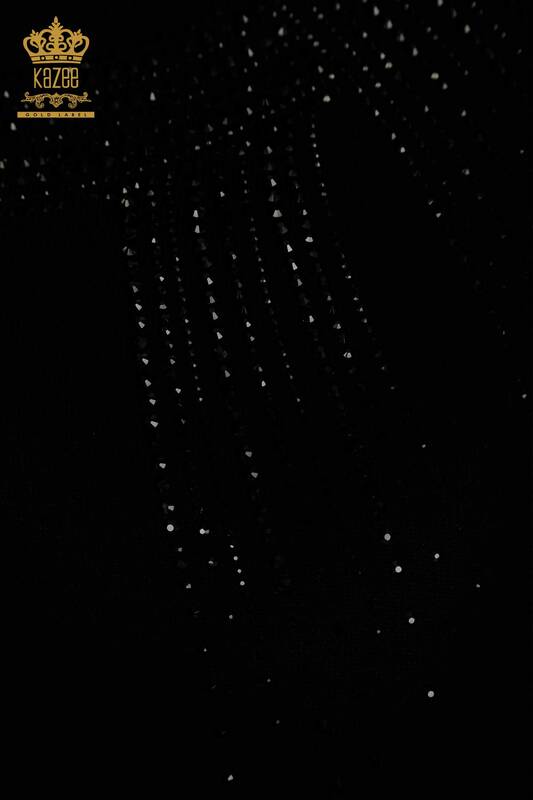 Hurtownia Sweterów Damskich z Dzianiny Kamień Haftowana Kieszeń Szczegółowe Okrągły Dekolt Czarny - 30623 | KAZEE