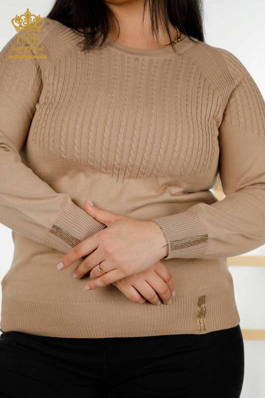 Hurtownia swetrów damskich z dzianiny z kamieniami i haftowaną tkaną norek - 30104 | KAZEE