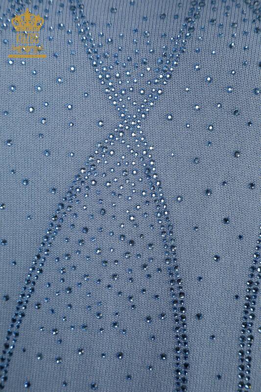 Hurtownia damskiego swetra z dzianiny American Model Stone Embroidered Blue - 30686 | KAZEE