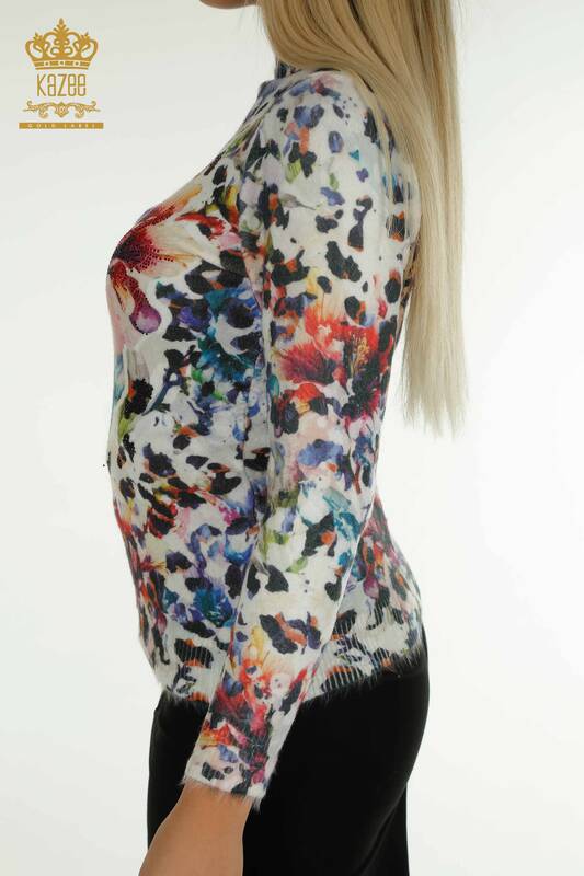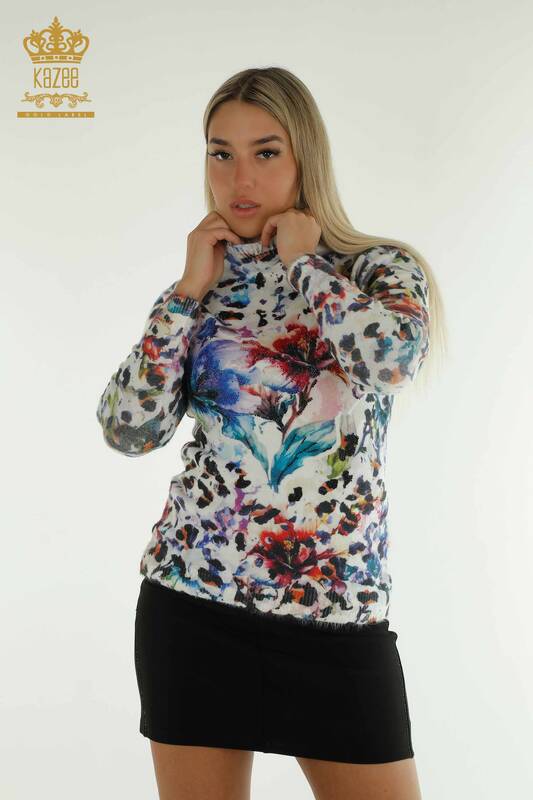 Hurtownia swetrów damskich z dzianiny Angora z długim rękawem i kamieniami haftowanymi cyfrowo - 40045 | KAZEE
