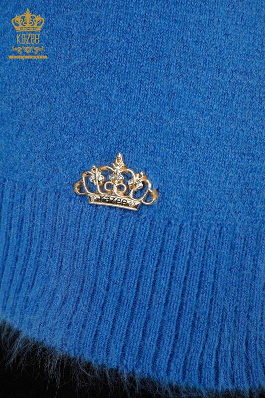 Hurtownia damskiego swetra z dzianiny Angora V Neck Basic Niebieski - 12047 | KAZEE
