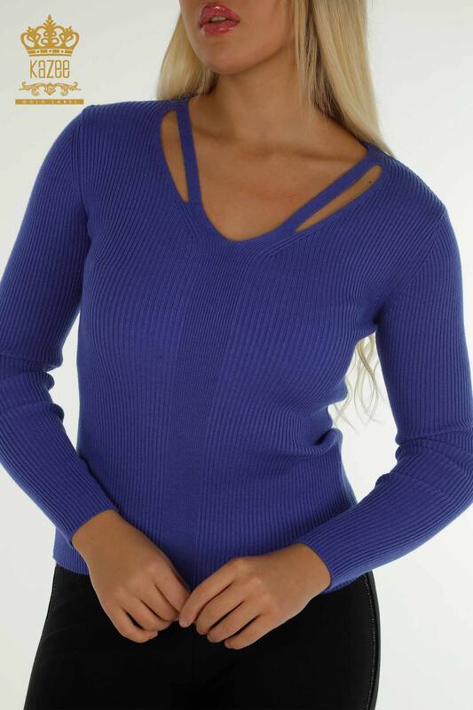 Hurtownia swetrów damskich z dzianiny z kołnierzykiem Podstawowy fiolet - 30392 | KAZEE