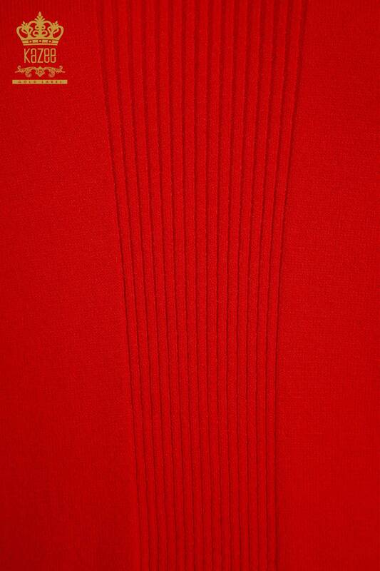 Hurtownia damskiego swetra z dzianiny z rozcięciem Basic Red - 30193 | KAZEE