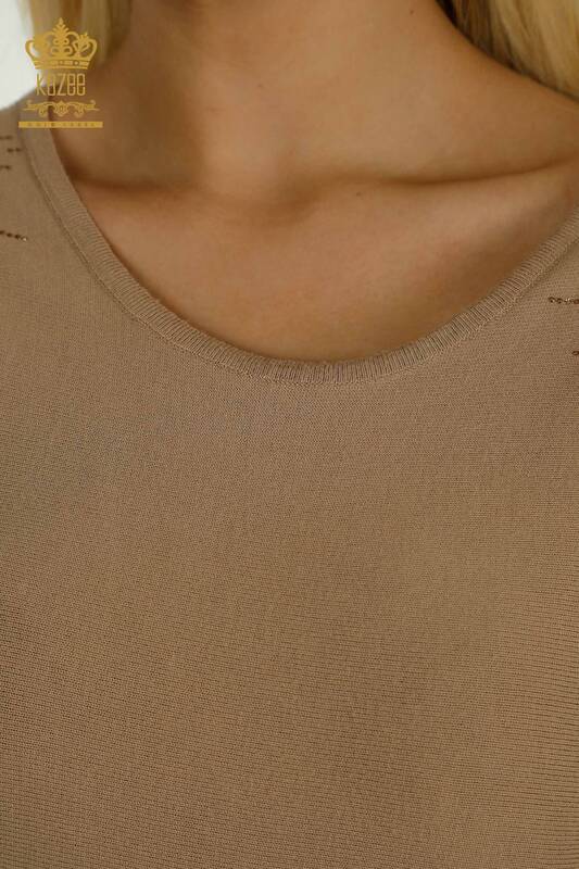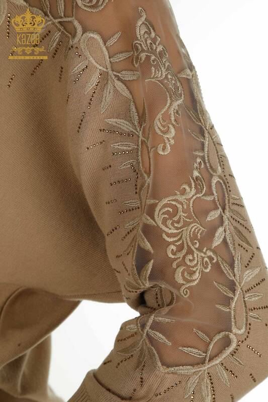 Hurtownia swetrów damskich z dzianiny, tiulowych, szczegółowych, haftowanych kamieniami, beżowych - 15699 | KAZEE