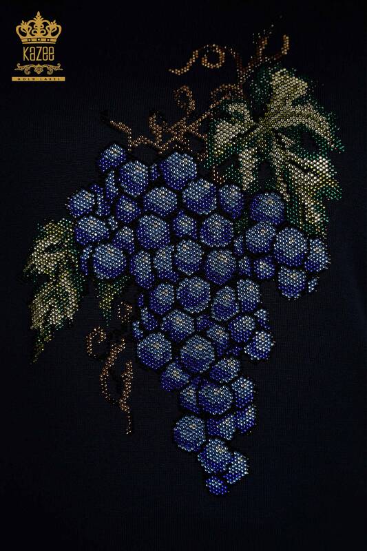 Hurtownia Sweterów Damskich Z Dzianiny Winogronowy Wzorzysty Kamień Haftowany Granatowy - 30488 | KAZEE
