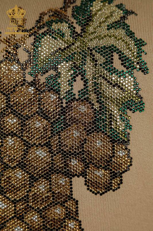 Hurtownia Sweterów Damskich Z Dzianiny Winogronowy Wzorzysty Kamień Haftowany Beżowy - 30488 | KAZEE