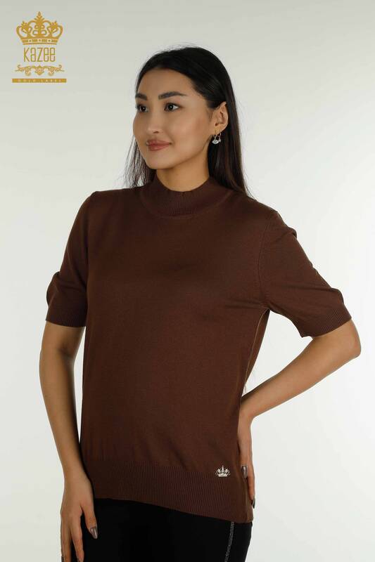 Hurtownia damskiego swetra z dzianiny Model amerykański ze stójką wiskoza brązowy - 16168 | KAZEE