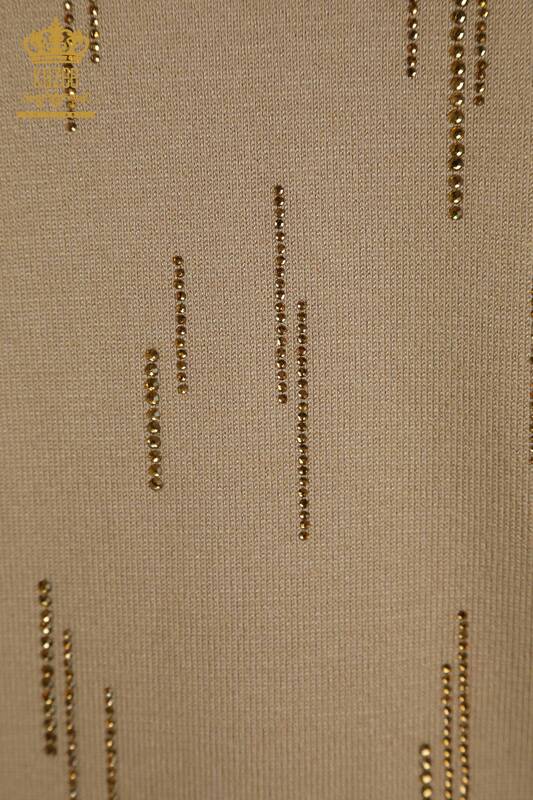 Hurtownia swetrów damskich z dzianiny - Stójka - beżowy - 30599 | KAZEE