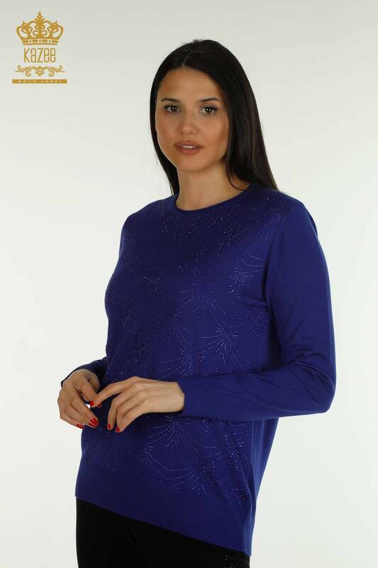 Hurtownia swetrów damskich z dzianiny z długim rękawem i haftowanymi kamieniami Saks - 30635 | KAZEE