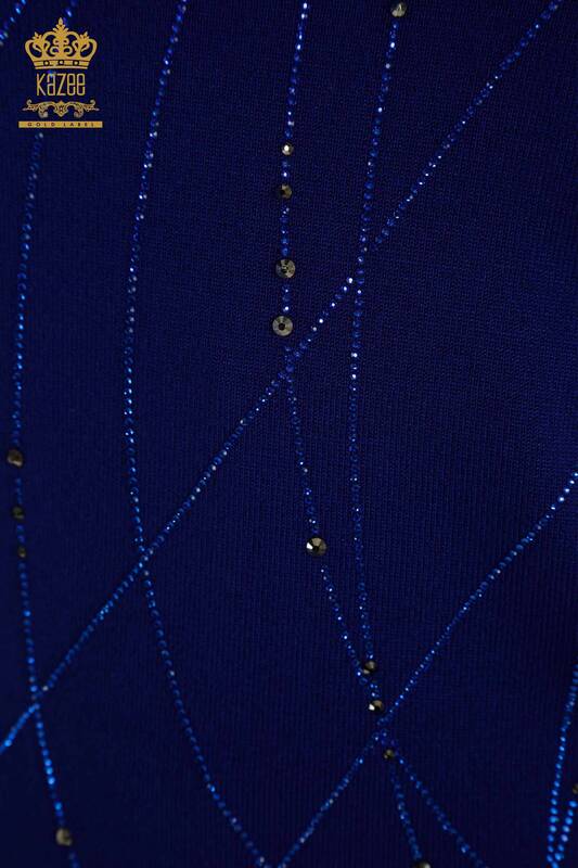 Hurtownia damska dzianiny sweter ze stójką, haftowanym kamieniem z długim rękawem Saks - 30454 | KAZEE