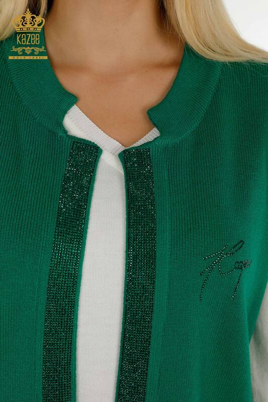 Hurtownia kamizelki damskiej z haftowanym kamieniem w kolorze zielonym - 30411 | KAZEE