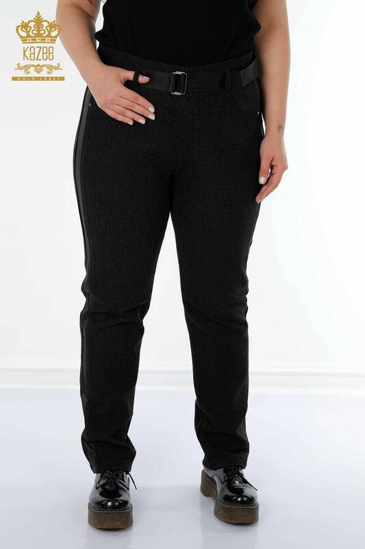 Hurtownia damskich legginsów ze skórzaną kieszenią na pasek szczegółowe czarne - 3658 | KAZEE
