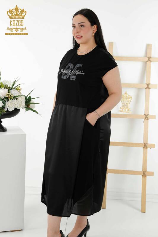 Hurtownia Damska Sukienka Kamienna Haftowana Kieszeń Czarna - 20368 | KAZEE